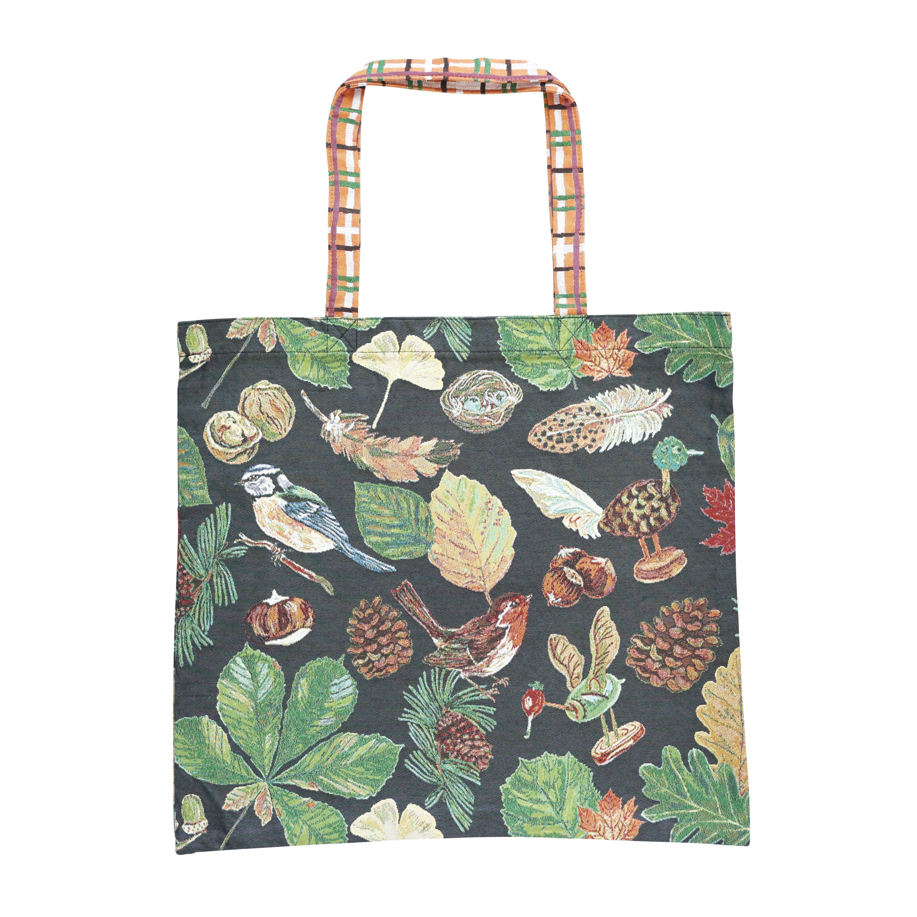 ナタリーレテ ちょっと大きめ ゴブラン トートバッグ チェック 小鳥 植物 森 バード