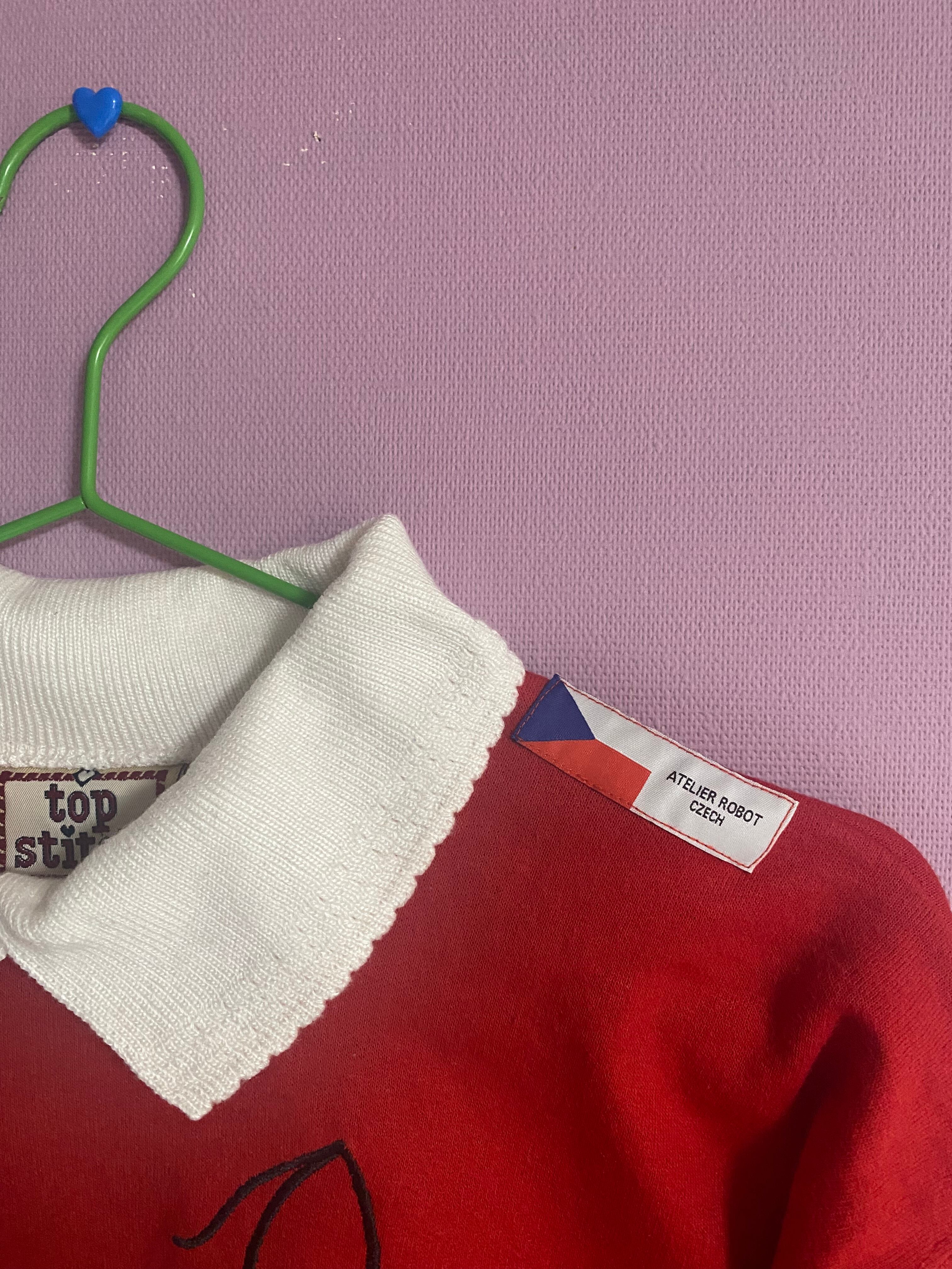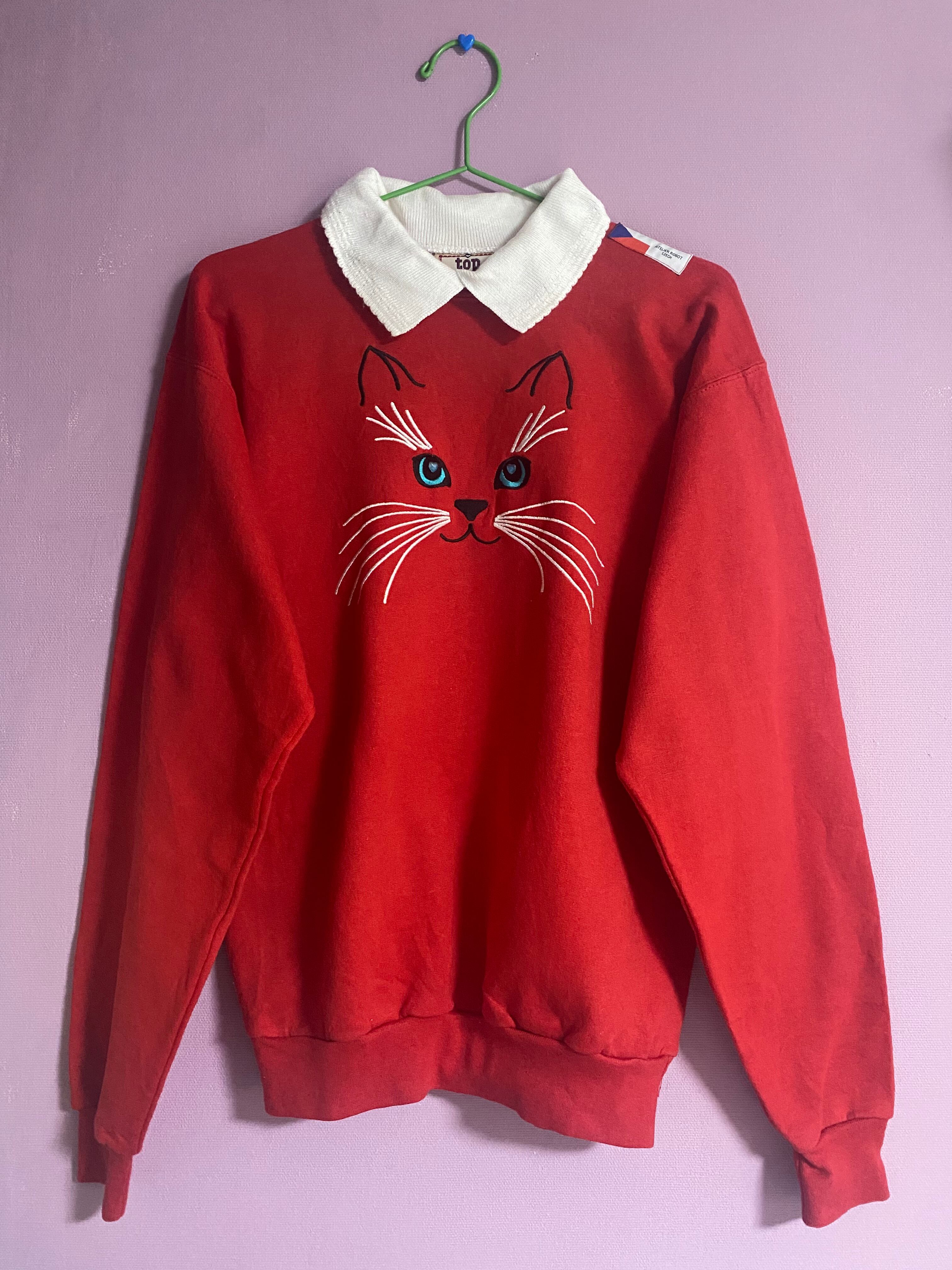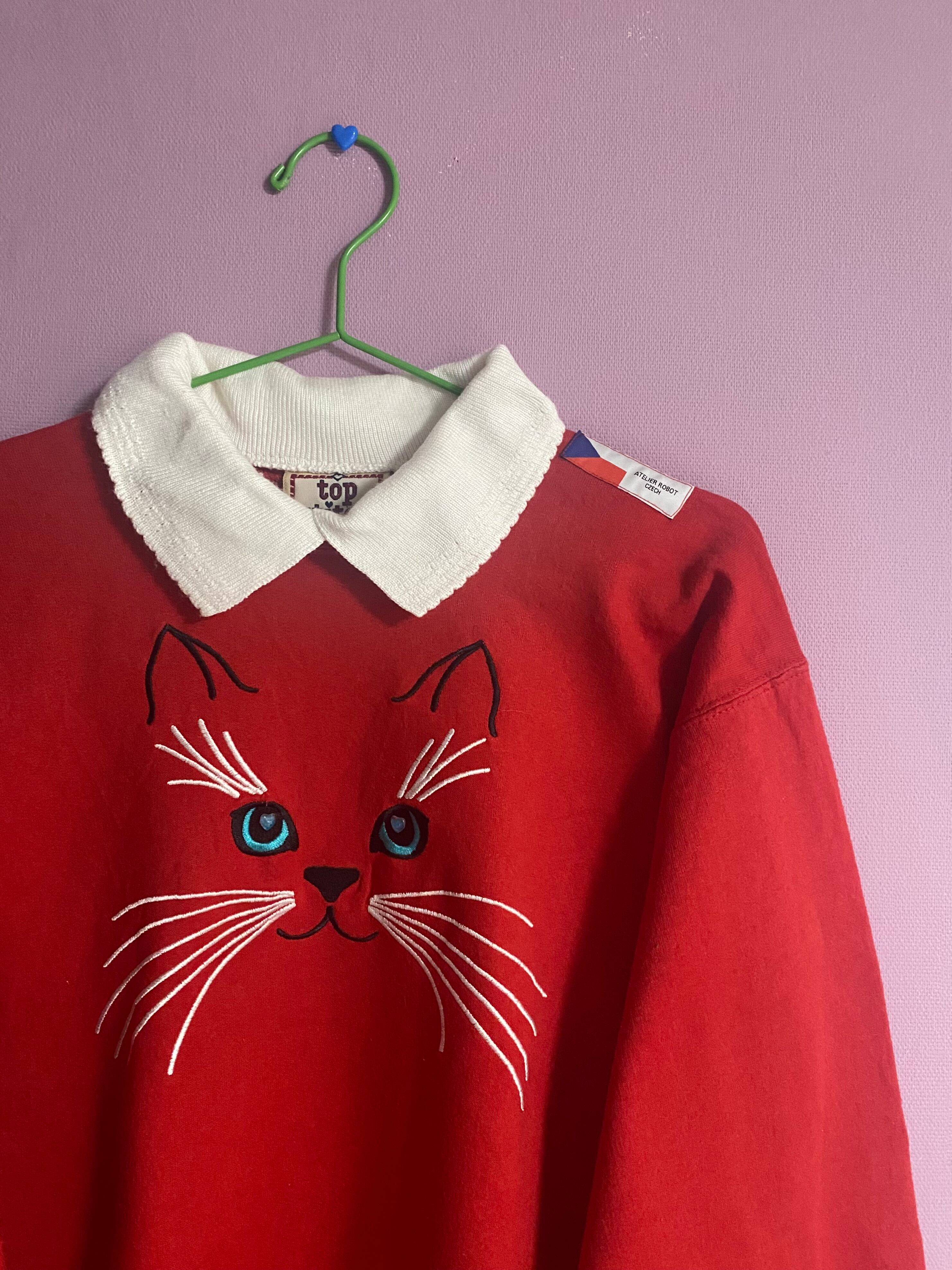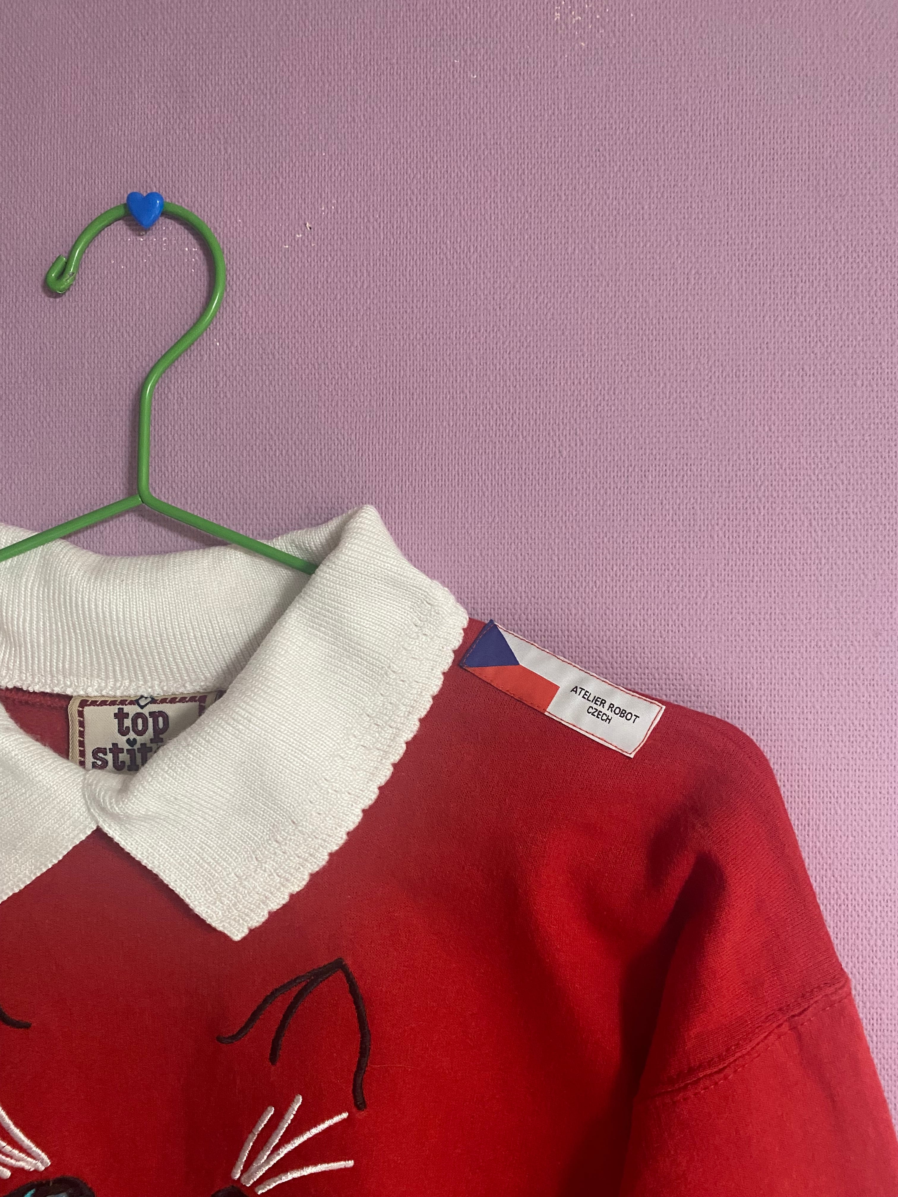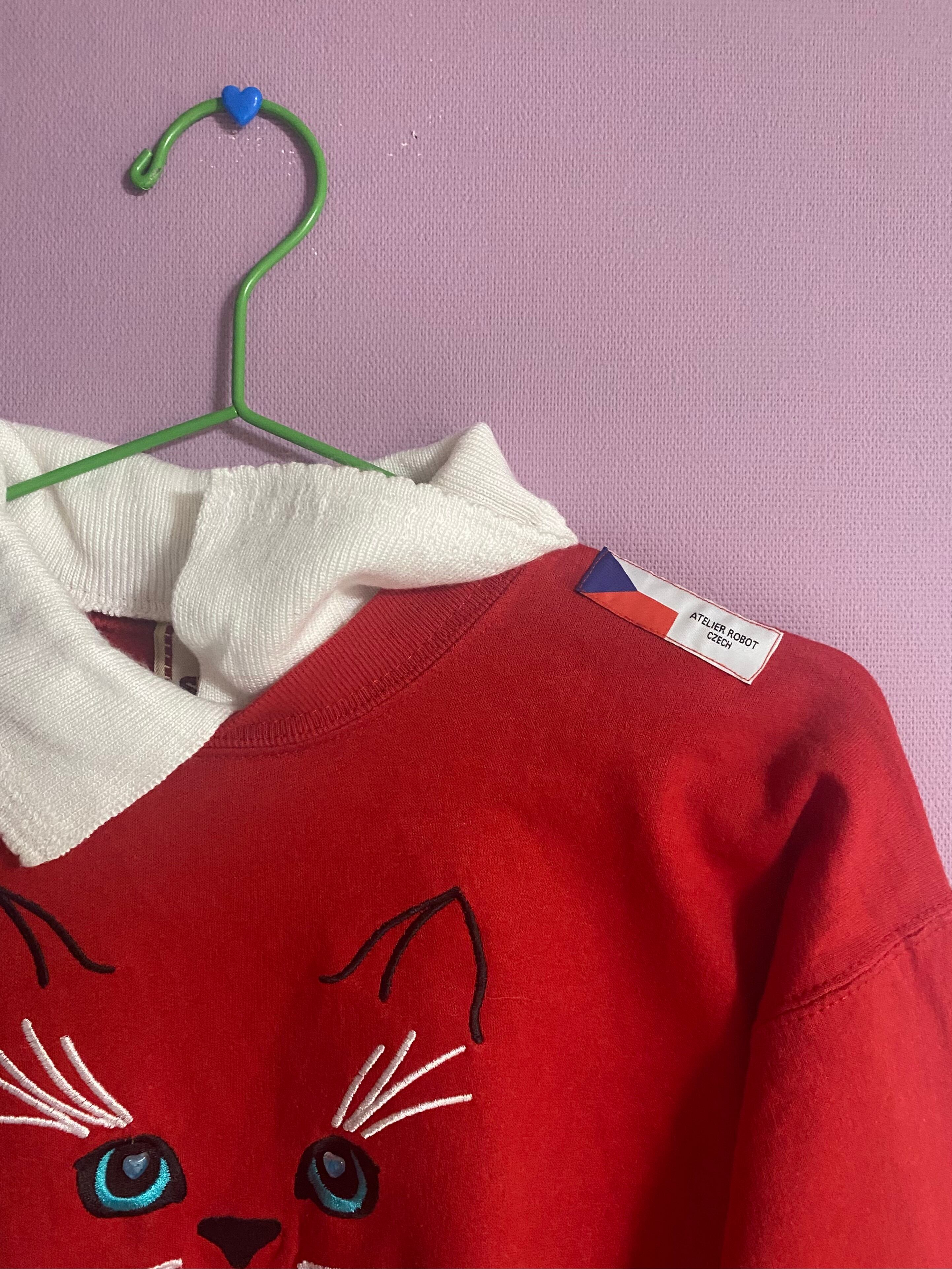 『赤面にゃーん』Vintage × Original-Custom 古着 カスタム スウェット 襟付き ATELIER ROBOT CZECH