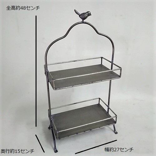 シャビーでシックな 小鳥佇む ラック トレー アンティーク加工 2段 収納 棚 小鳥 ことり