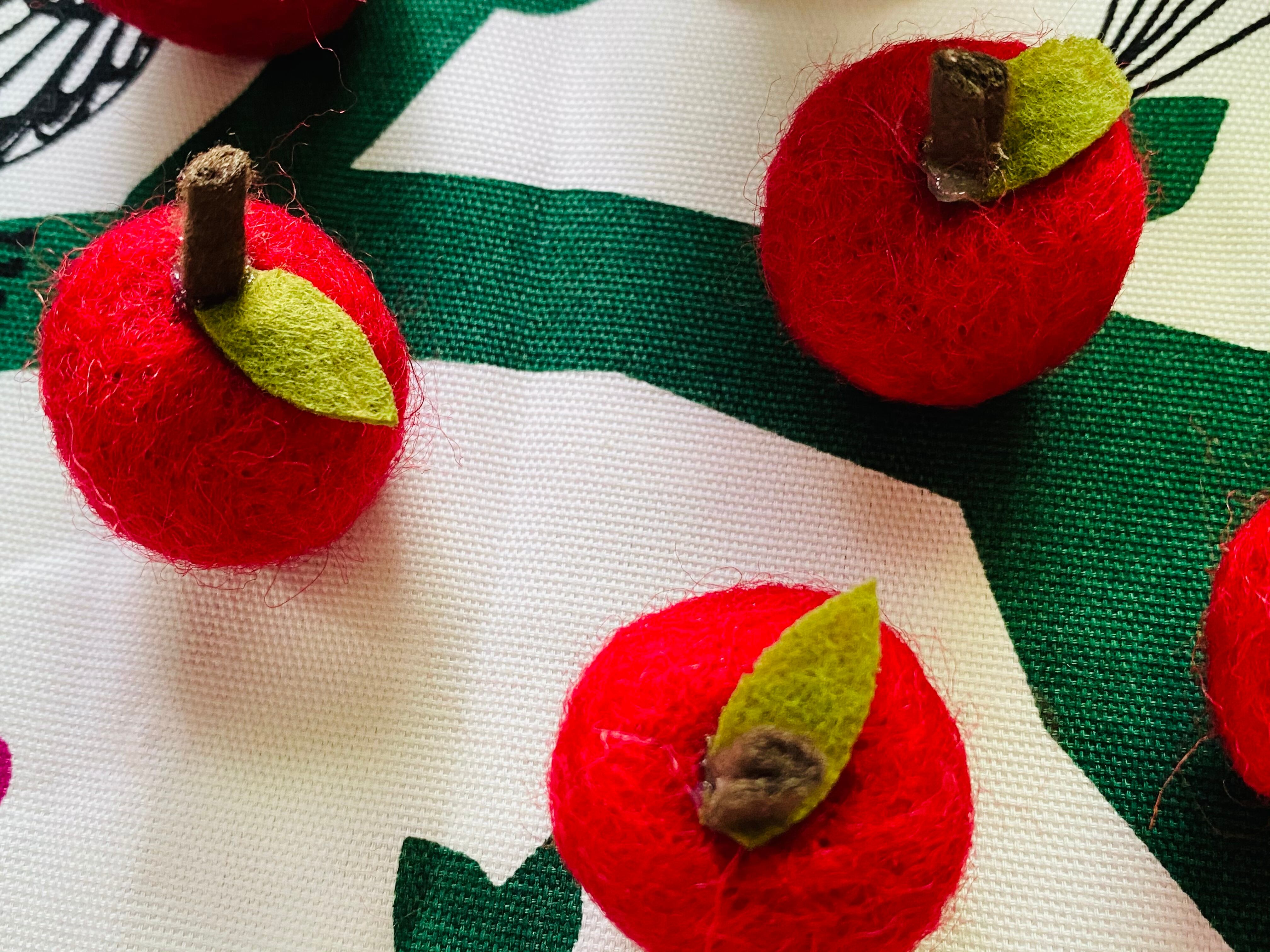 フェルト製のあったかほっこりリンゴちゃんインテリアです.