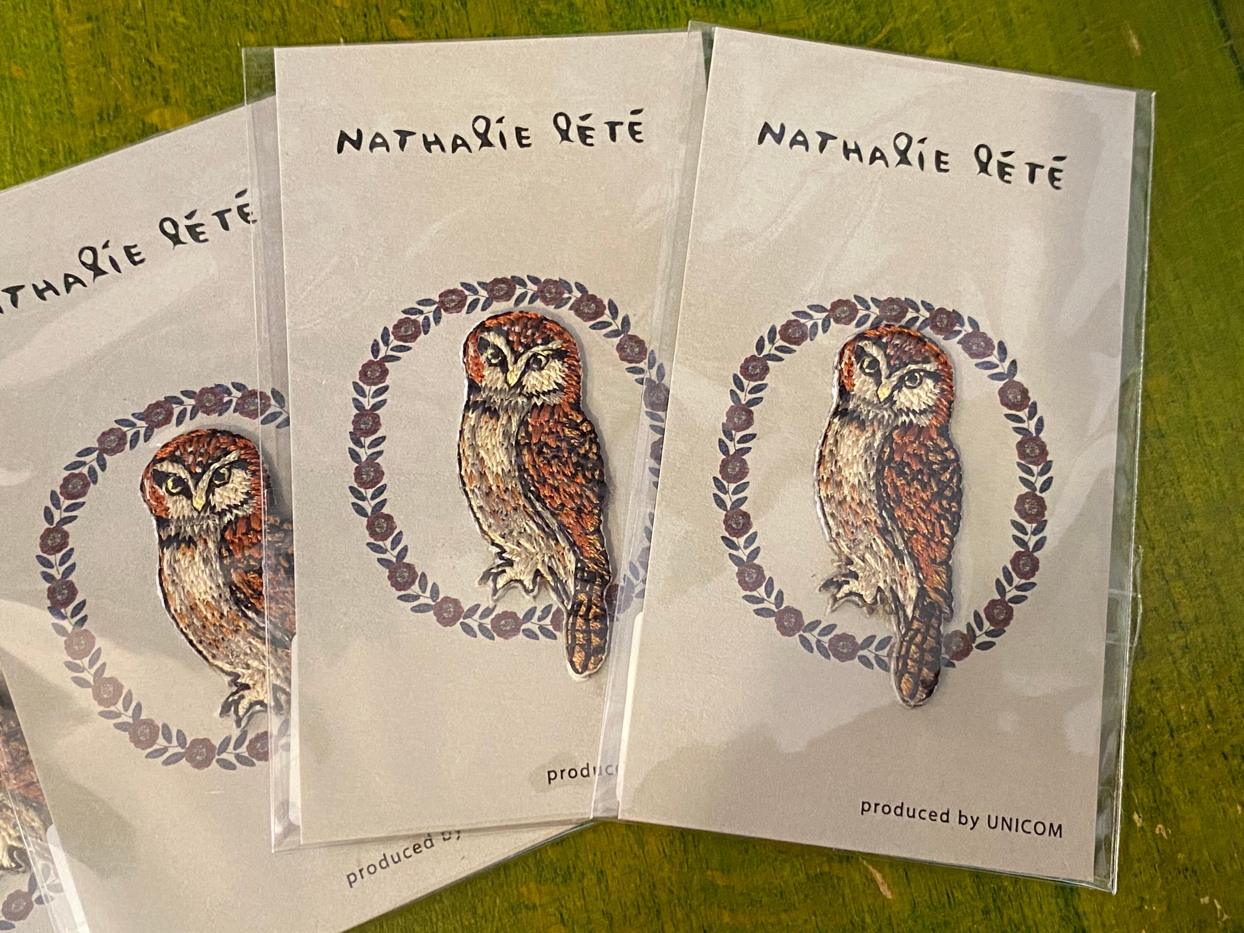 刺繍が..ナタリーの描いたフクロウの佇む姿をより優雅に美しく表現してくれています.
