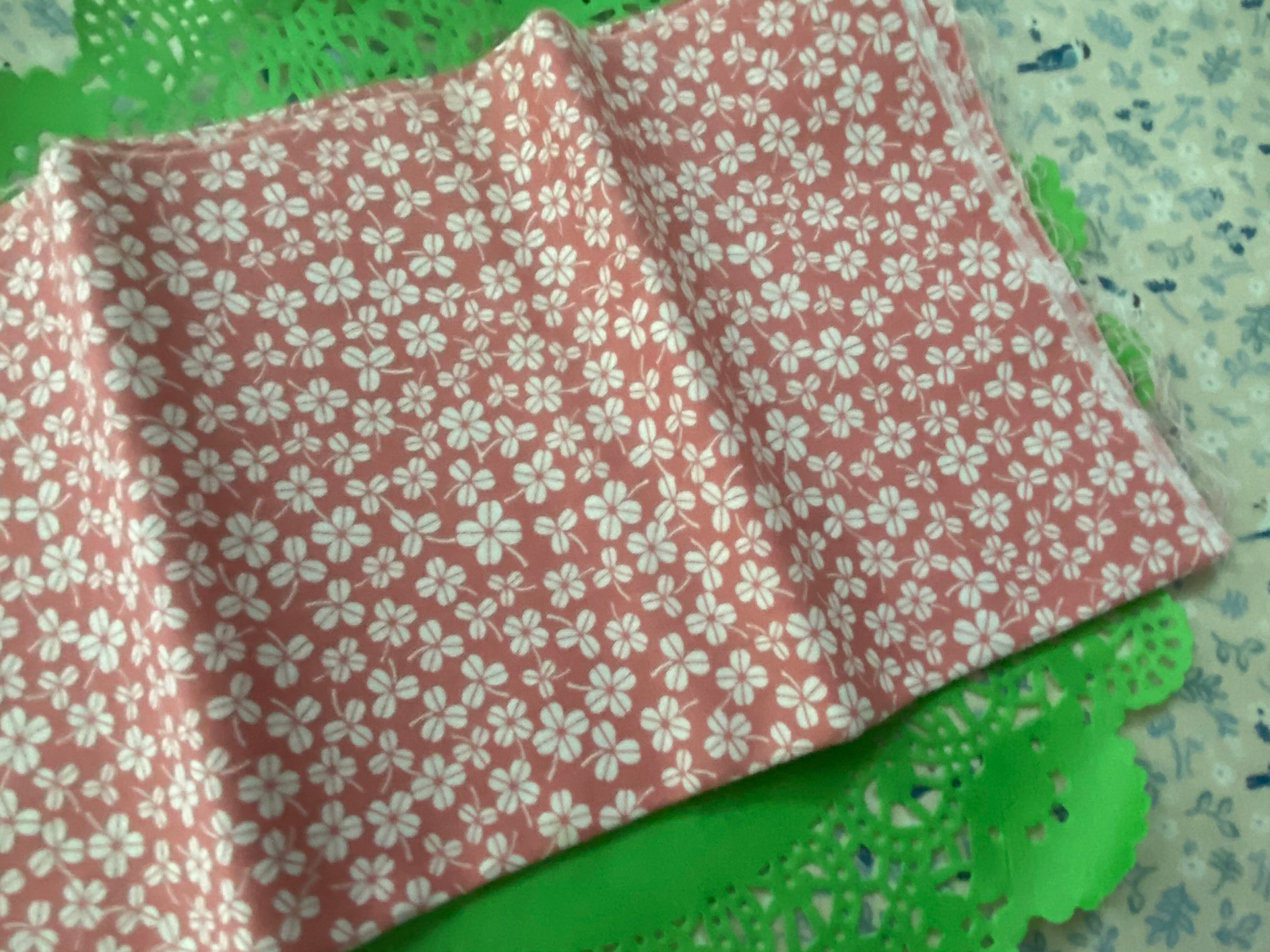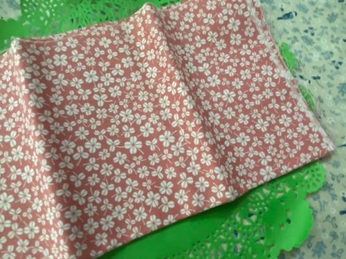 サーモンピンクが珍しくもオシャレなクローバ畑デザインのカットクロス.
