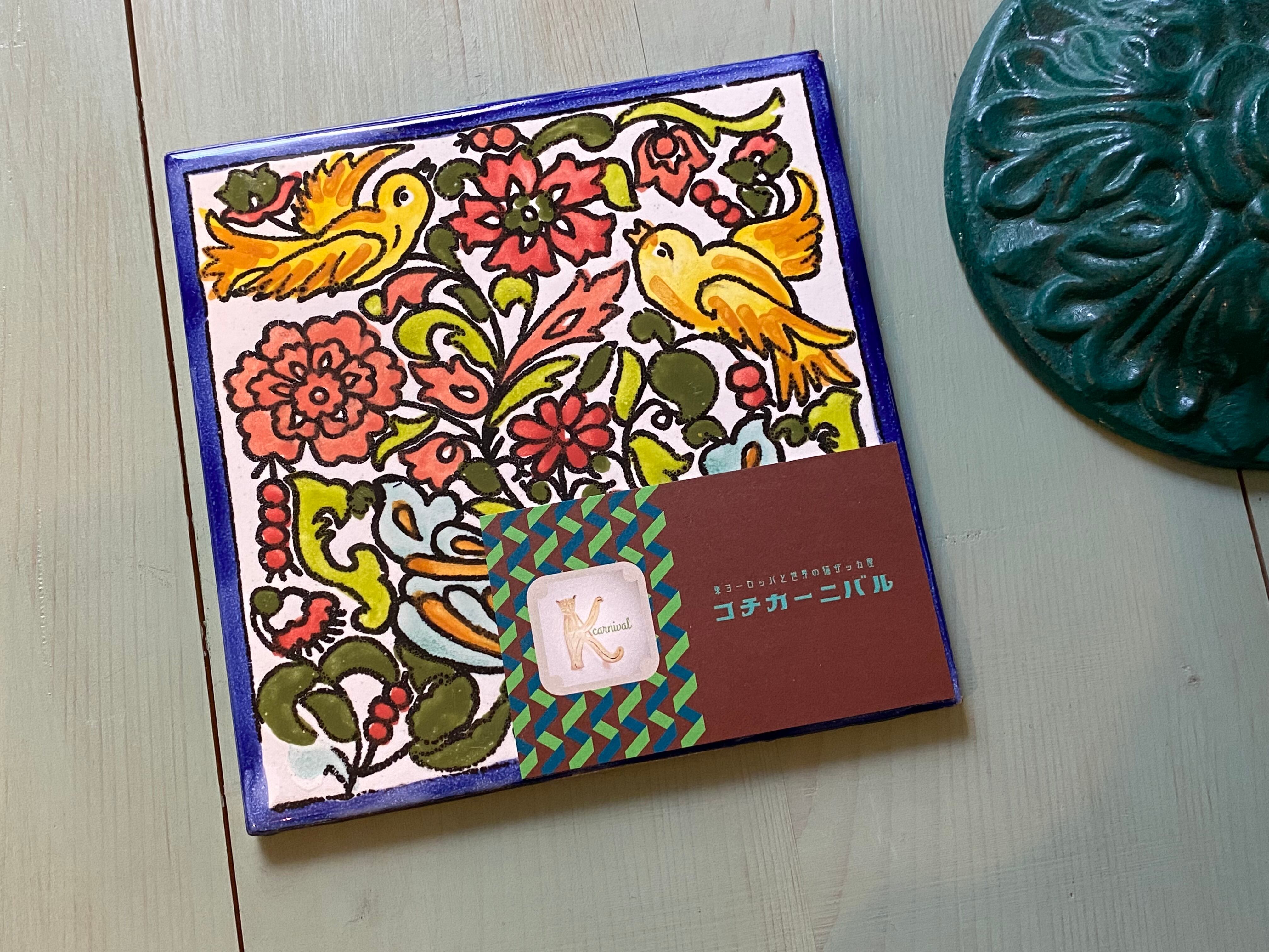 イタリア製 カナリア 花 タイル 陶板 アートタイル 陶器 手描き