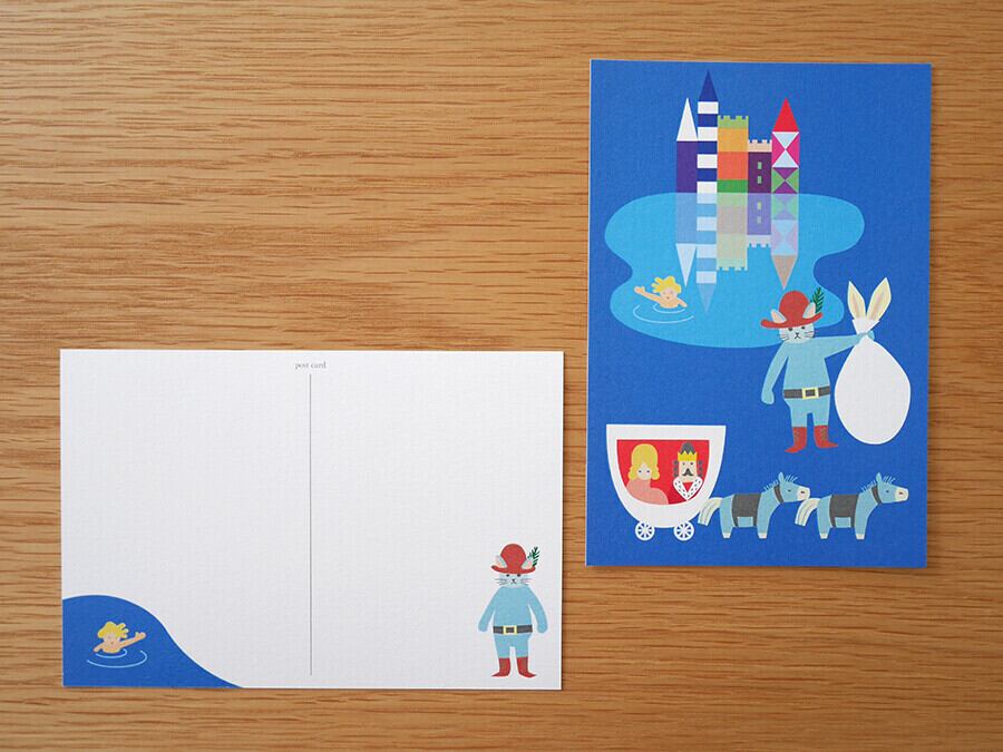 水彩画 イラストレーター 長靴をはいたネコ 猫 ポストカード