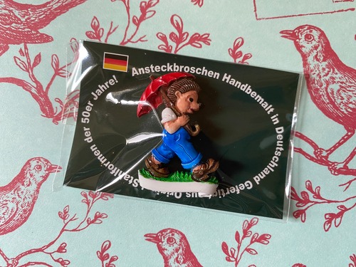 ドイツ製 ブローチ ハリネズミ はりねずみ パラソル