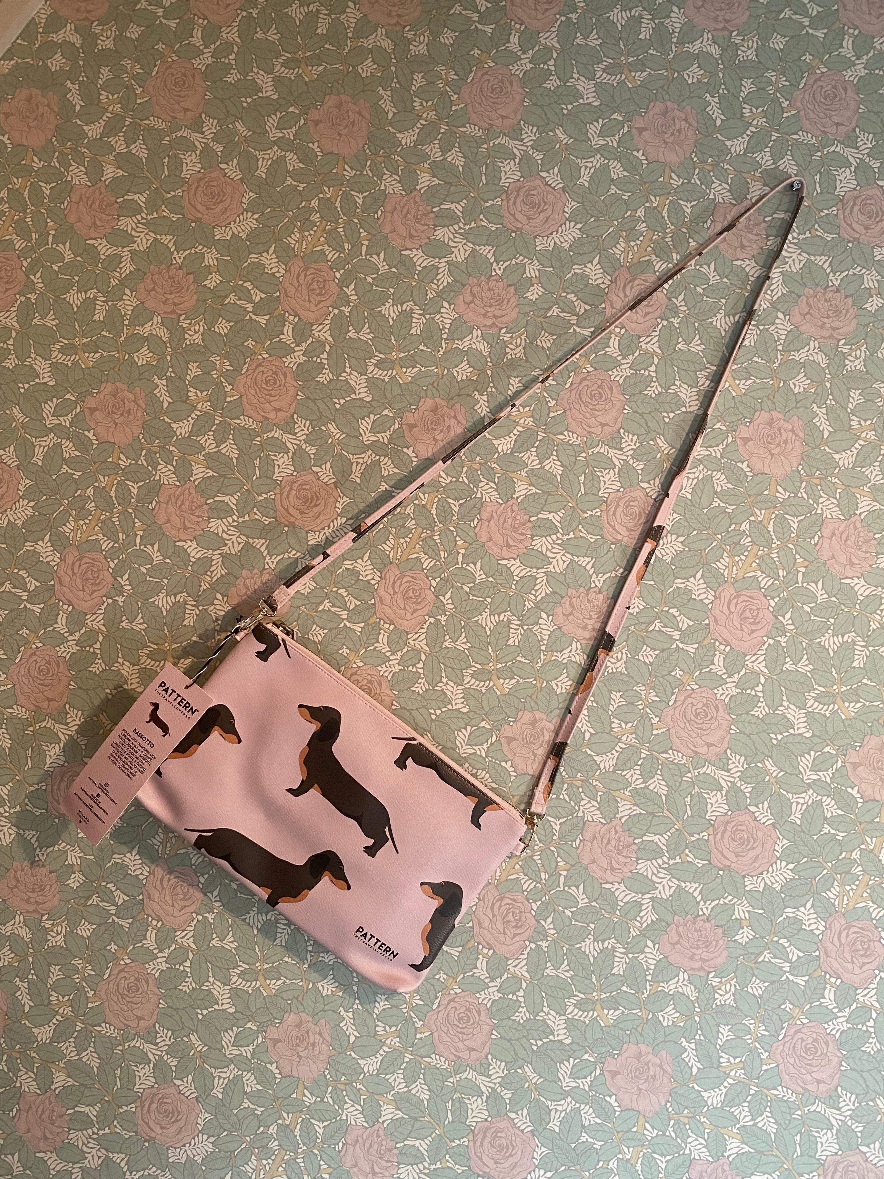 イタリア製 3WAYバッグ ポシェット クラッチバッグ ポーチ 犬柄 クラッチ ショルダー付 iPadケース ミニチュアダックス ダックス ピンク