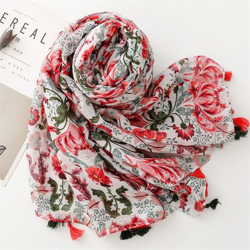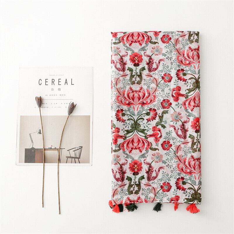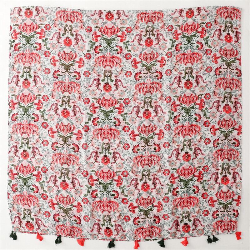 ラスト❶ 大判薄型 フラワー柄 タッセル付き ストール スカーフ パレオ