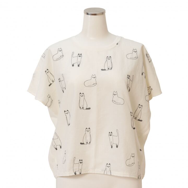 刺繍 ネコ フレンチスリーブ Tシャツ プルオーバー