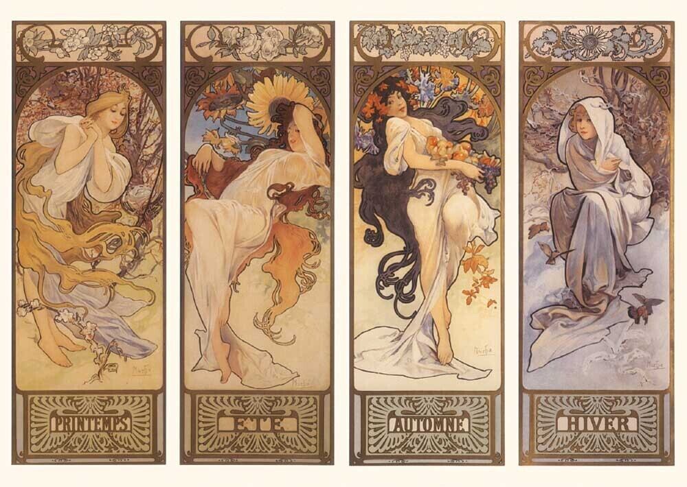 チェコの画家アルフォンスミュシャの『四季』ポストカード