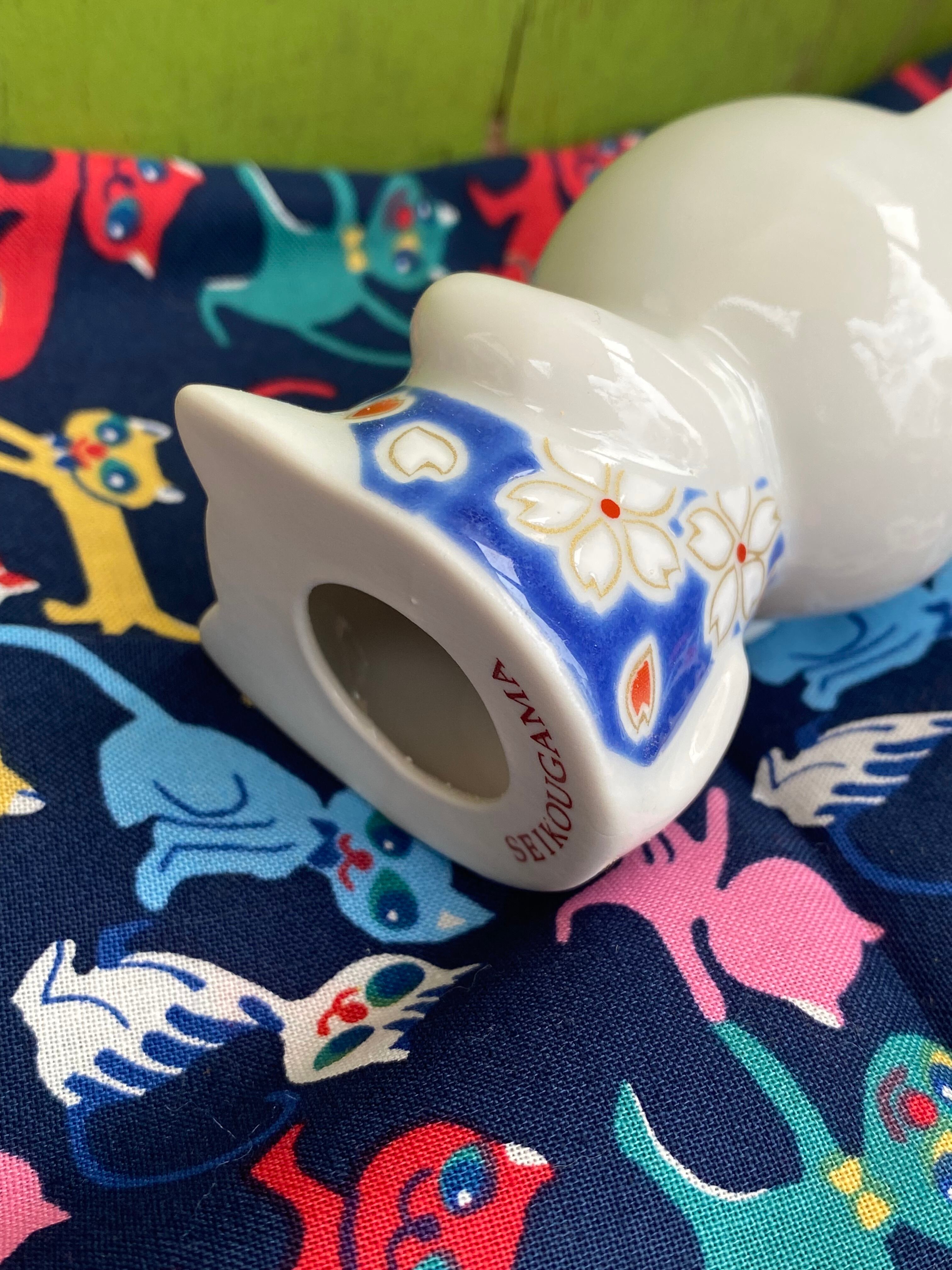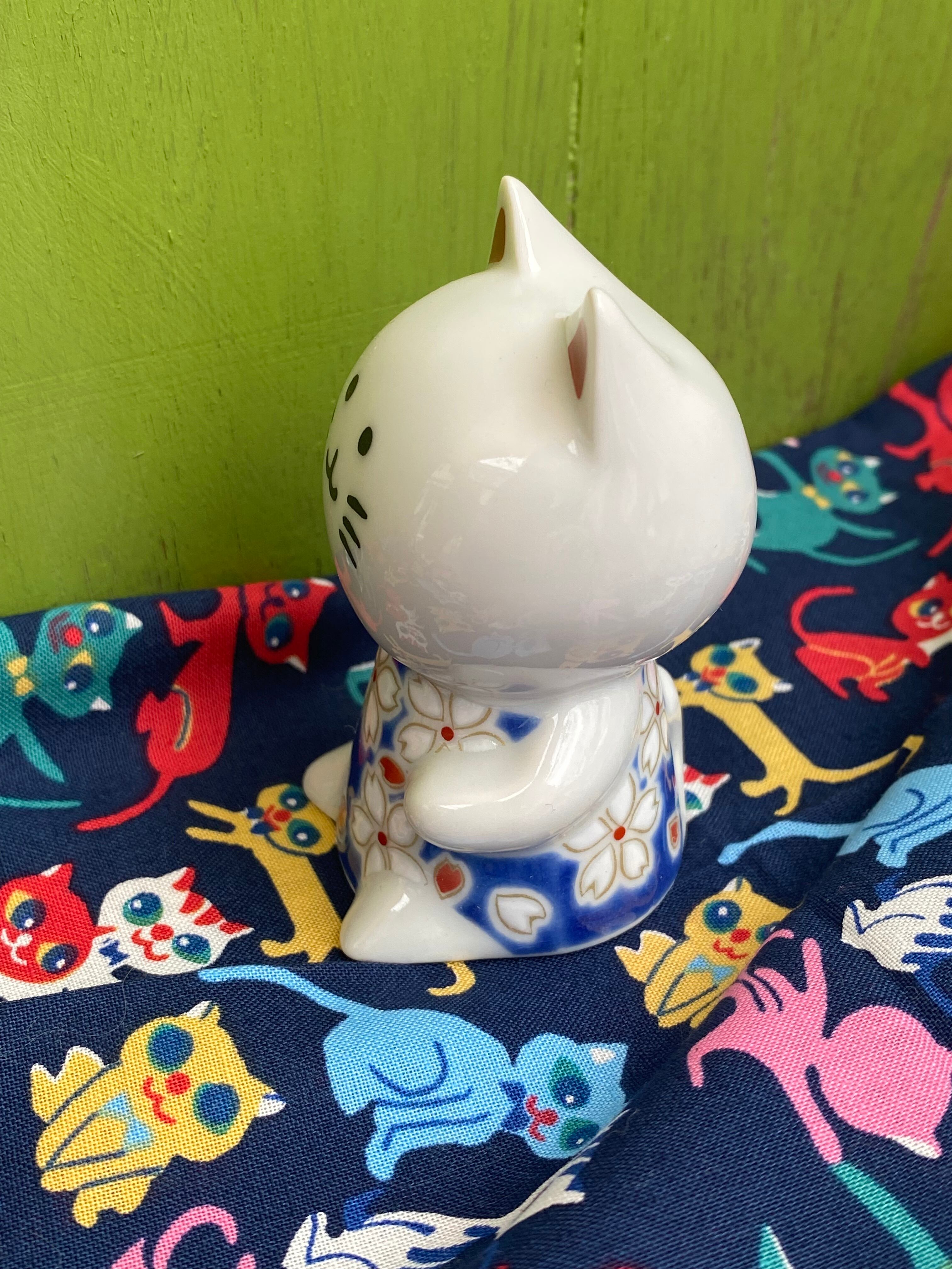 九谷焼 ミニ 招き猫 桜 サクラ 猫 青